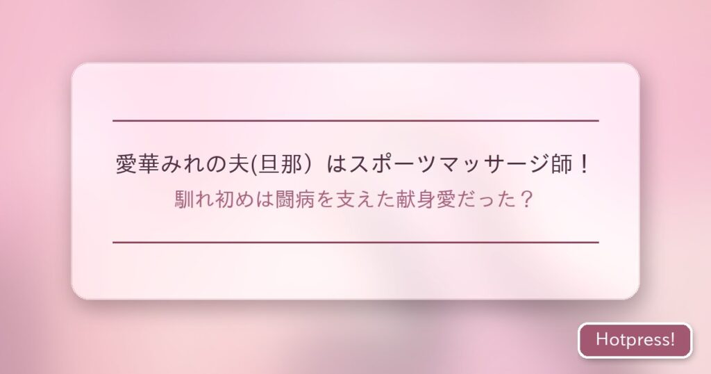 元宝塚トップスターとして活躍し、多くのファンに愛されている愛華みれさん。 そんな彼女を陰で支え続けている夫の存在が、いま注目を集めています。 実は夫は10歳年下のスポーツマッサージ師で、闘病中も献身的に支えた人物でした。 今回は、愛華みれさん... -
