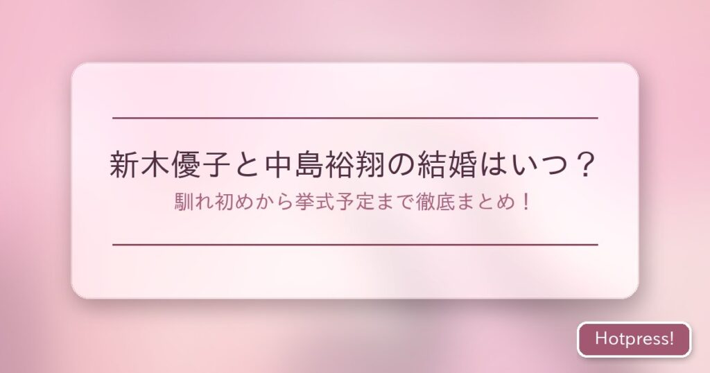 2026年4月11日に結婚を発表した新木優子さんと元Hey!Say!JUMP中島裕翔さん。交際のきっかけや馴れ初め、結婚発表の経緯、今後の活動予定まで、2人の結婚情報を徹底的にまとめました。 -