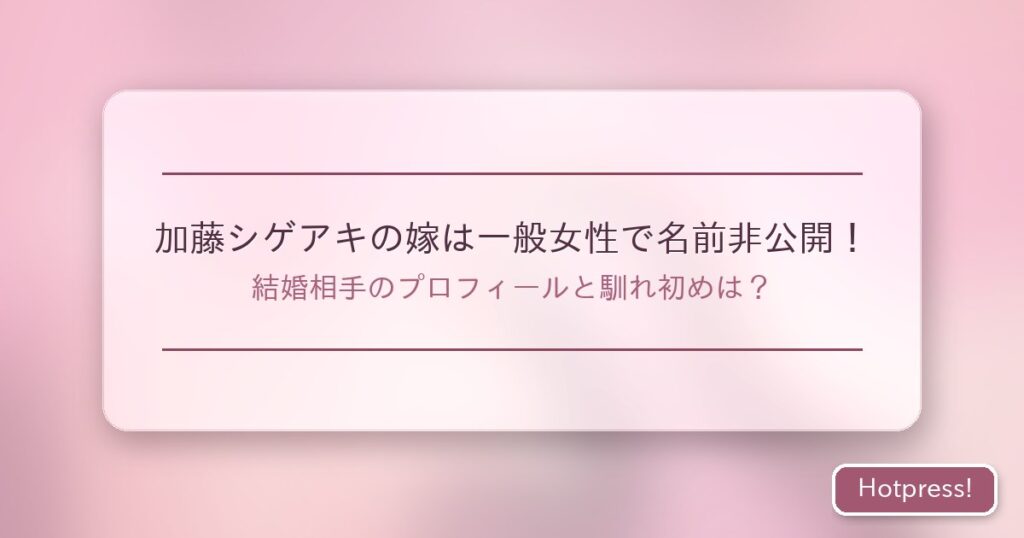 NEWSの加藤シゲアキさんが2024年3月に結婚を発表されましたね! ファンの間では「お相手はどんな人?」「名前や顔写真は?」と話題になっています。 そこで今回は、加藤シゲアキさんの嫁について、公開されている情報を詳しく調査しました! この記事では、奥... -