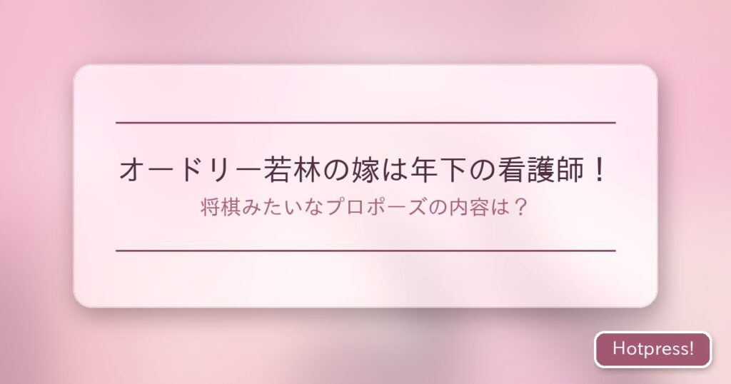 オードリーの若林正恭さんといえば、鋭いツッコミと独特の内省的な視点で人気のお笑い芸人ですよね。 そんな若林さんが2019年11月22日「いい夫婦の日」に結婚を発表し、お相手の人物像や馴れ初めが大きな話題になりました。 「奥さんは15歳年下の看護師っ... -