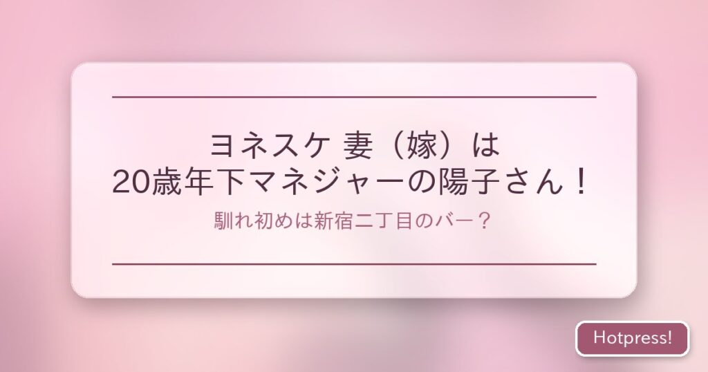 落語家のヨネスケさんが2024年7月に再婚されたことが話題になっています。 お相手は20歳年下の陽子さんで、現在はマネジャーとしてヨネスケさんを支えているそうです。 2人の馴れ初めや結婚生活について、詳しく見ていきましょう! ヨネスケの妻(嫁)は20... -