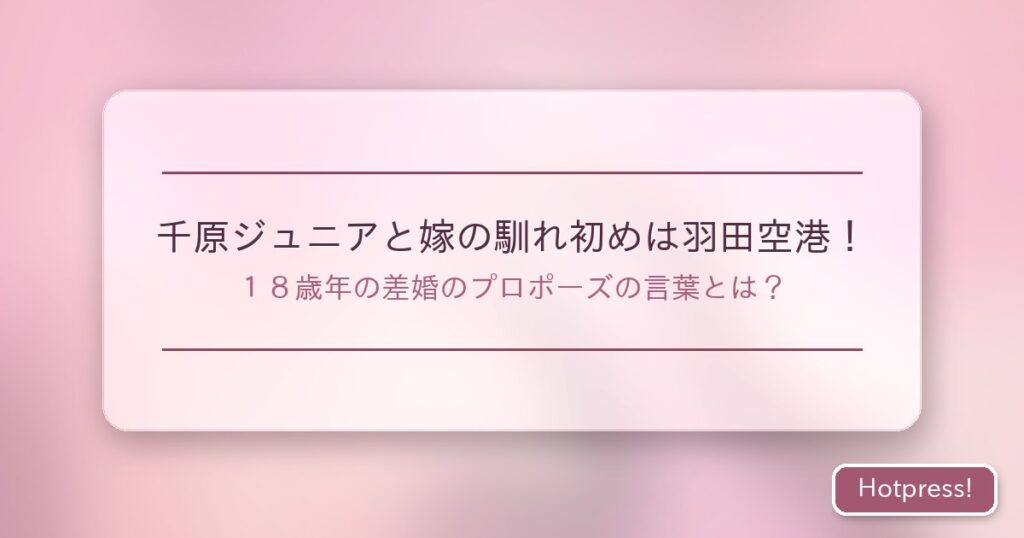 千原ジュニアさんと奥さんの馴れ初めが気になっている方も多いのではないでしょうか? お笑い芸人として活躍する千原ジュニアさんは、2015年に18歳年下の一般女性と結婚されました。 出会いの場所は羽田空港の菓子店で、交際期間はわずか半年というスピー...
