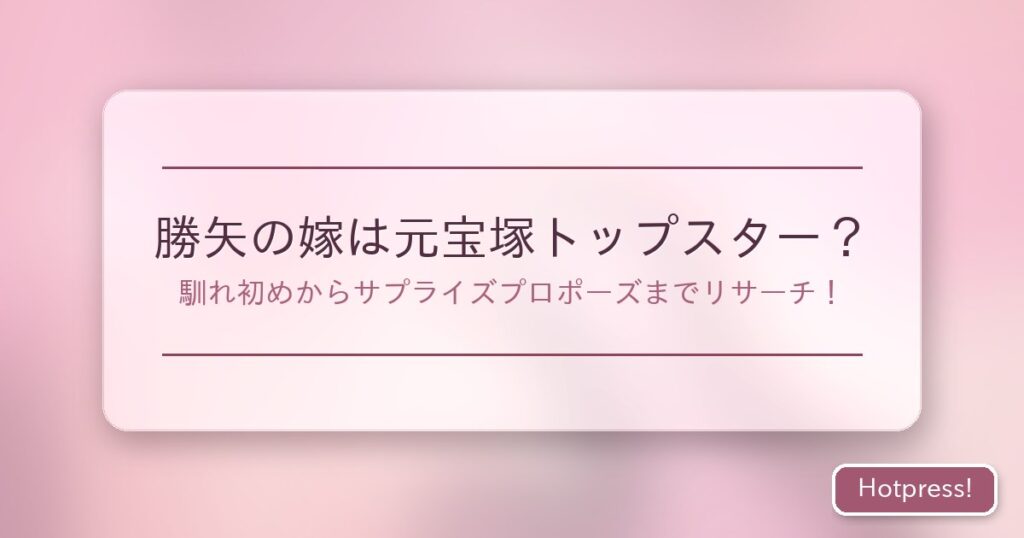 勝矢の嫁は元宝塚トップスター?馴れ初めからサプライズプロポーズまでリサーチ!