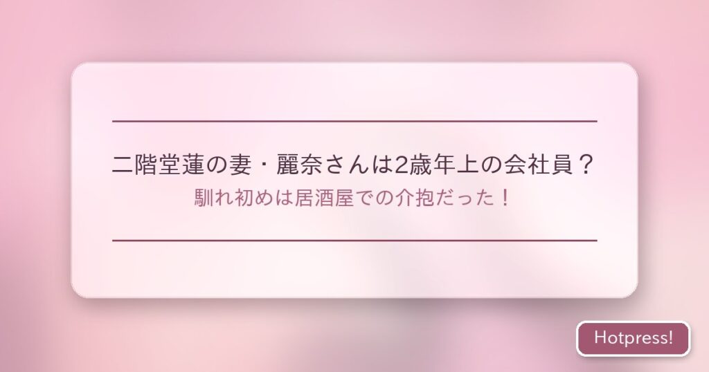 【顔画像】二階堂蓮の妻・麗奈さんは2歳年上の会社員?馴れ初めは居酒屋での介抱だった!