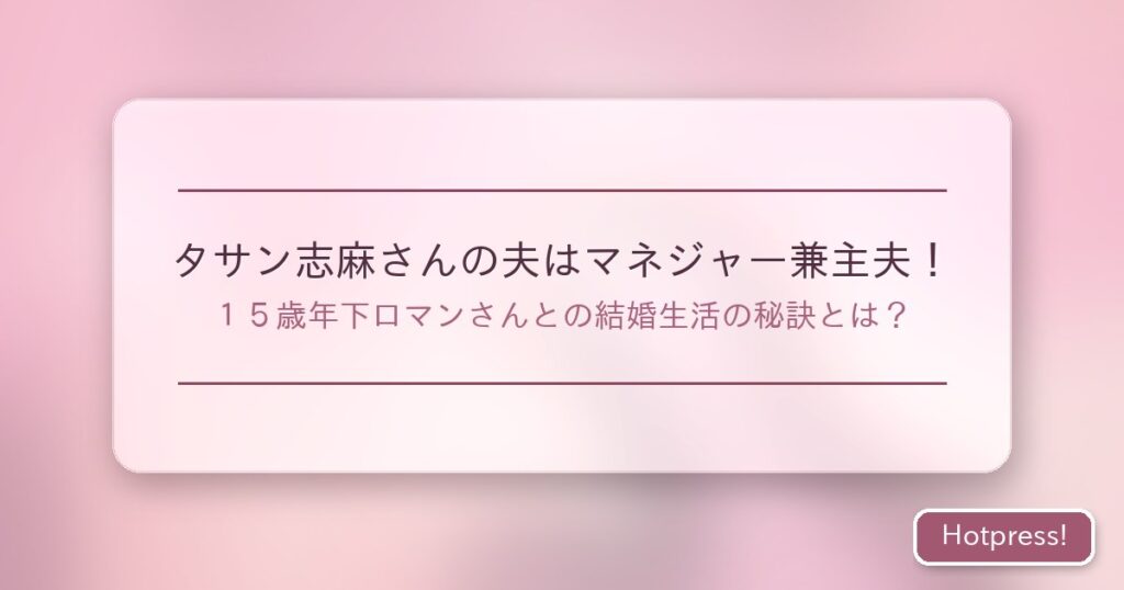 「伝説の家政婦」として大人気のタサン志麻さん。 テレビでも引っ張りだこの志麻さんですが、その活躍を支えているのが夫のタサン・ロマンさんです。 15歳年下のフランス人男性と結婚し、3人の子どもを育てながら仕事をこなす志麻さん。 一体どんな夫婦関... -