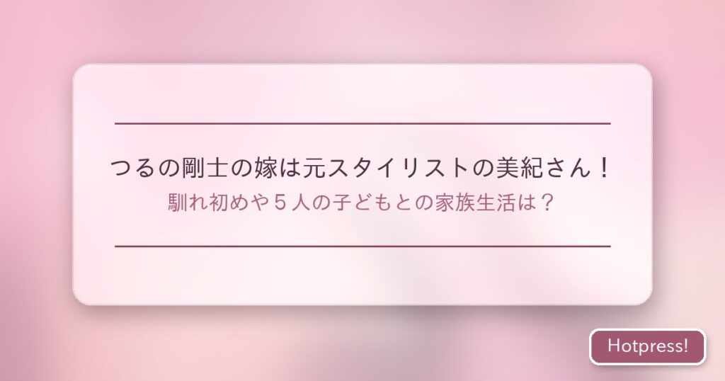 タレントのつるの剛士さんといえば、5人の子どもを持つイクメンパパとして有名ですよね。 そんなつるの剛士さんを支える嫁はどんな人なのでしょうか? この記事では、つるの剛士さんの嫁である美紀さんのプロフィールや顔画像、2人の馴れ初め、そして5人の... -