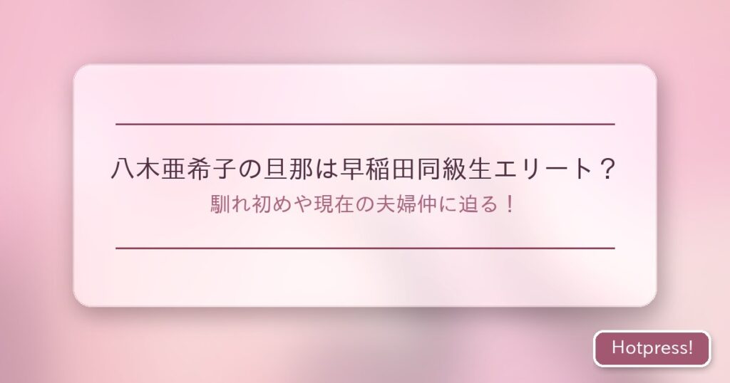 フリーアナウンサーとして長年にわたり第一線で活躍し、落ち着いた語り口と知的な雰囲気で多くのファンに愛されている八木亜希子さん。 そんな八木亜希子さんについて検索すると、必ず話題にあがるのが「旦那さんは誰なのか」という点です。 芸能界とは無... -