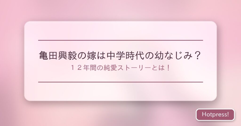 元プロボクサーの亀田興毅さんと奥様の純愛ストーリーをご存知ですか?中学時代から12年間も交際を続け、結婚に至ったその感動的な物語に、多くの人が心を打たれています。 今回は、亀田興毅さんと奥様・伊東美香さん(現:亀田美香さん)の出会いから結婚...