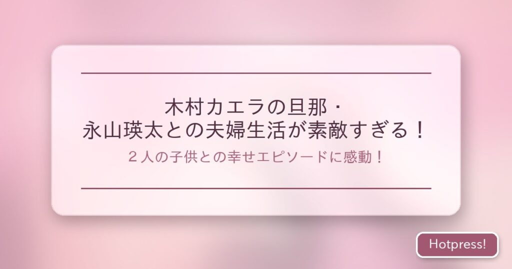 歌手として長年第一線で活躍する木村カエラさん。そのプライベートでは、俳優の永山瑛太さんとの温かい家庭を築いていることでも知られています。 今回は、そんな2人の馴れ初めから現在の家族生活、そして子供たちとの感動エピソードまでを詳しくご紹介し... -