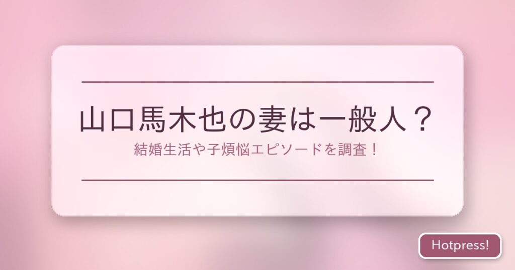俳優の山口馬木也さんといえば、数々の映画やドラマ、舞台で活躍されている実力派俳優として知られています。 そんな山口馬木也さんの妻について気になっている方も多いのではないでしょうか。 今回は山口馬木也さんの妻は一般人なのか、結婚生活や子煩悩... -