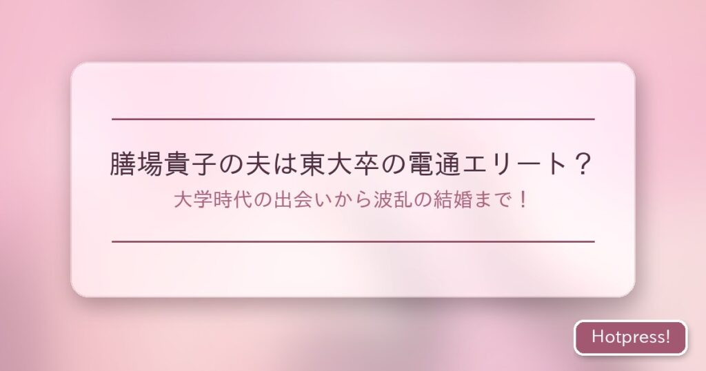 人気アナウンサーとして知られる膳場貴子さん。その華やかな活躍の裏には、意外にも波乱に満ちた恋愛遍歴がありました。そして今、彼女を支える存在として注目を集めているのが、噂の「電通エリート」の夫です。 東京大学時代に出会い、友人として長年の付... -
