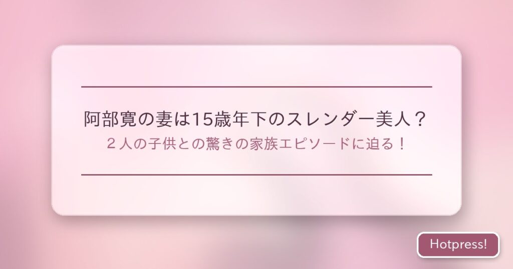 人気俳優の阿部寛さん。その演技力と存在感で多くのファンを魅了し続けていますが、プライベートな家族生活についてはあまり知られていません。 今回は、阿部寛さんの15歳年下の妻や2人の子供たちとの家族生活に迫ります。 知られざる阿部家の素顔や、驚き... -