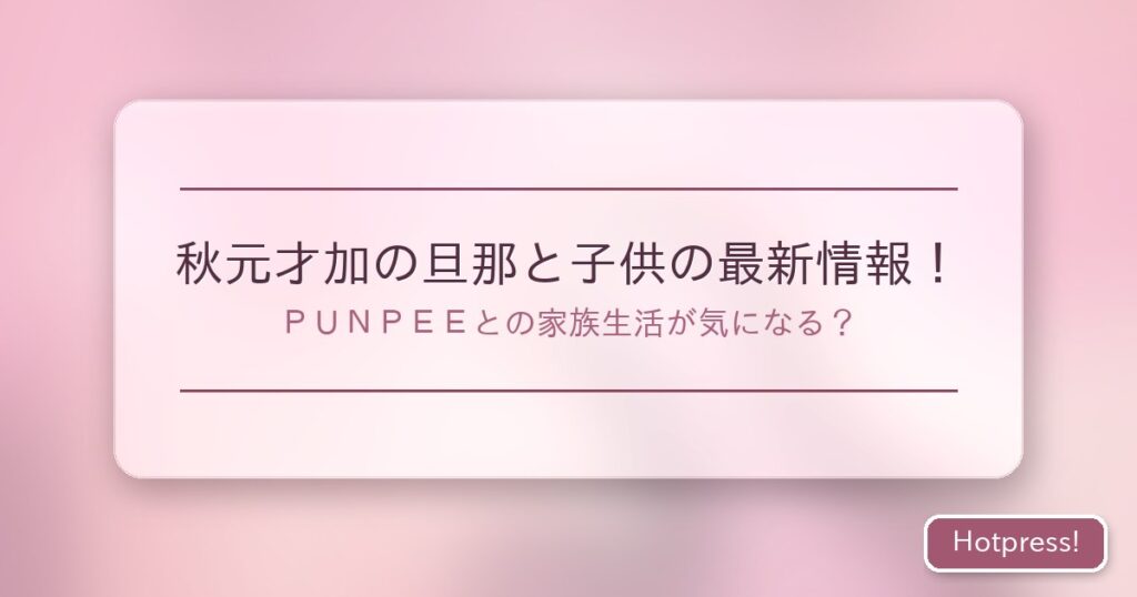 元AKB48のメンバーで、現在は女優として活躍する秋元才加さん。彼女の結婚や出産のニュースは、多くのファンを驚かせました。 今回は、秋元才加さんの旦那であるPUNPEEさんとの馴れ初めから、誕生した子供の情報まで、気になる家族生活の最新情報をお届け... -