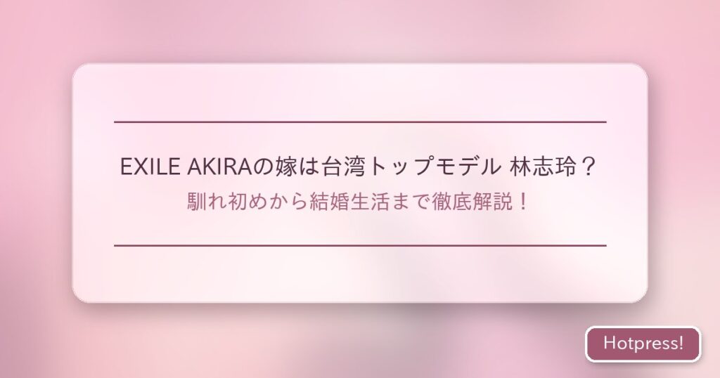 EXILE AKIRAさんの嫁として知られる林志玲(リン・チーリン)さん。台湾を代表するトップモデルで女優の彼女は、どんな人物なのでしょうか?AKIRAさんとの馴れ初めや結婚生活について、多くの人が興味を持っているのではないでしょうか? 今回は、EXILE AK... -