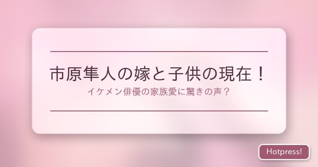 市原隼人といえば、ドラマや映画で活躍する人気イケメン俳優として知られています。そんな彼の私生活、特に家族についての情報に多くの人が興味を持っているようです。今回は、市原隼人の嫁と子供の現在の様子、そして彼の家族愛について詳しくお伝えしま... -