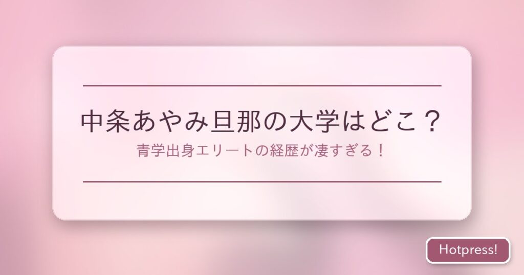 人気女優の中条あやみさんが結婚を発表し、大きな話題となりました。そんな中条あやみさんの旦那さんについて、多くの人が興味を持っているようです。特に気になるのは、旦那さんの学歴や経歴ではないでしょうか? 今回は、中条あやみさんの旦那さんの大学... -