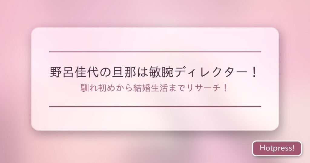 元AKB48メンバーで現在はタレントとして活躍する野呂佳代さん。 2020年11月に結婚を発表し、話題となりました。 そんな野呂佳代さんの旦那さんについて、皆さんはどのくらいご存知でしょうか? 実は、野呂佳代さんの旦那さんはテレビ業界で活躍する敏腕デ... -