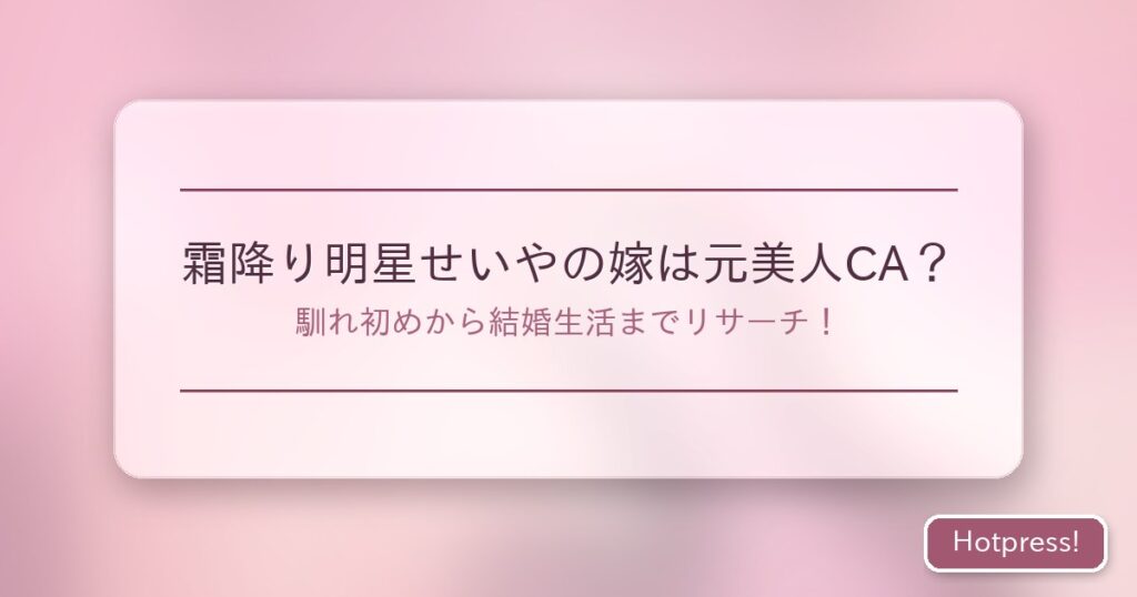 お笑いコンビ「霜降り明星」のせいやさんが結婚し、話題となっています。今回は、せいやさんの嫁について、その素顔や馴れ初め、そして結婚後のエピソードまで詳しくリサーチしました。せいやさんのプライベートな一面が垣間見える、興味深い情報満載でお...