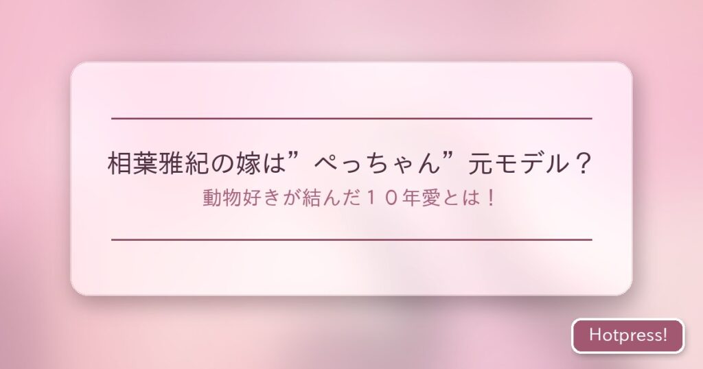 相葉雅紀の嫁は”ぺっちゃん”元モデル?動物好きが結んだ10年愛とは!