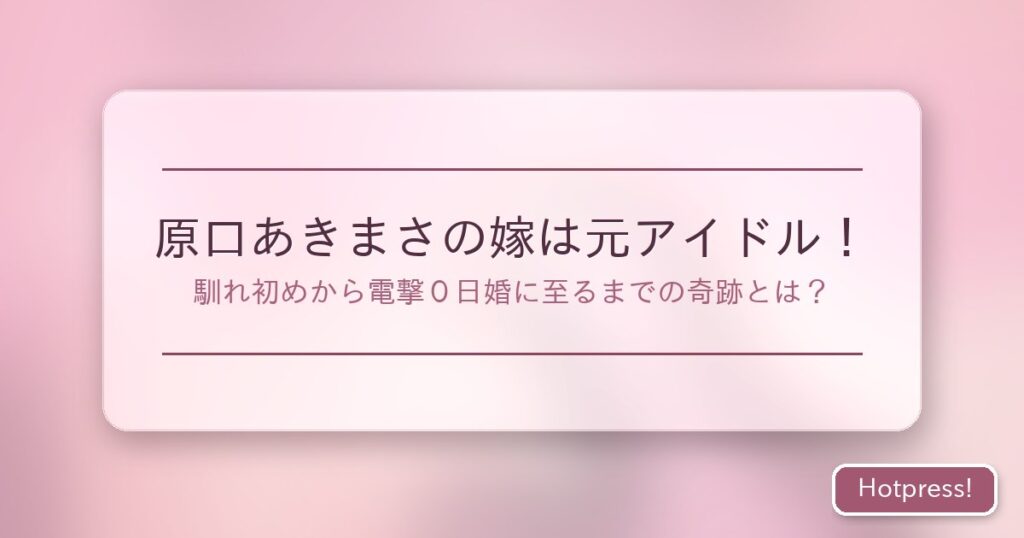 皆さんは、お笑い芸人の原口あきまささんをご存知ですか?彼の妻である原口めぐみさんについて、どのくらい知っていますか? 実は、原口めぐみさんには意外な過去があり、そして2人の出会いから結婚に至るまでには、驚きの展開がありました。 今回は、原口... -