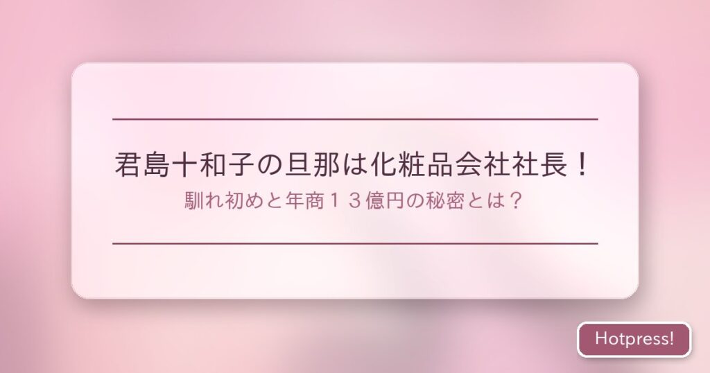 君島十和子さんといえば、50代とは思えない美貌で多くの女性から憧れられる存在ですよね。 そんな彼女を支える旦那さんについて、皆さんはどれくらいご存知でしょうか? 実は、君島十和子さんの旦那さんも負けず劣らず魅力的な経歴の持ち主なんです。 今回... -