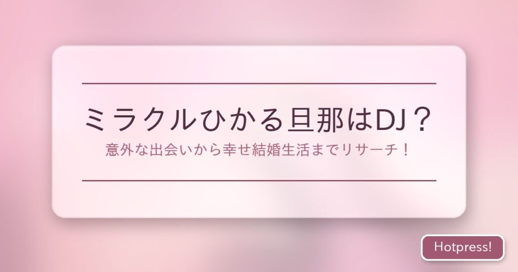 ミラクルひかる旦那はDJ?意外な出会いから幸せ結婚生活までリサーチ!