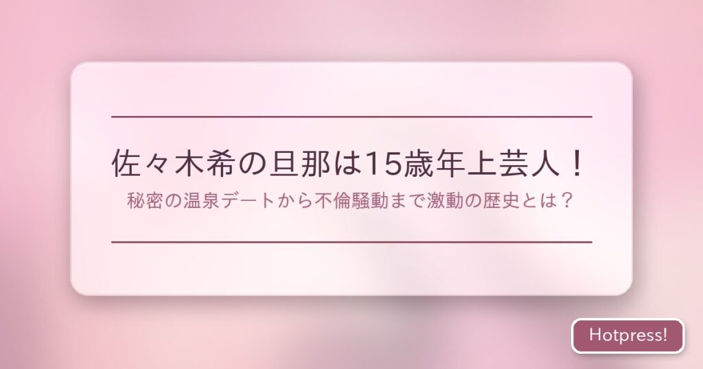 佐々木希の旦那は15歳年上芸人!秘密の温泉デートから不倫騒動まで激動の歴史とは?