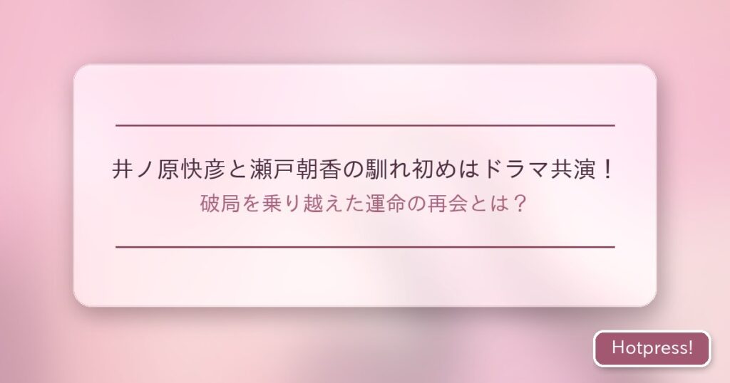 芸能界きっての仲睦まじい夫婦として知られる井ノ原快彦さんと瀬戸朝香さん。二人の馴れ初めは、ドラマ共演がきっかけでした。しかし、その道のりは決して平坦ではありませんでした。一度は破局を経験し、運命的な再会を果たすまでの二人の物語を、今回は...