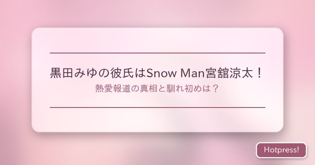 2026年2月25日、日本テレビの人気アナウンサー・黒田みゆさんと、人気アイドルグループSnow Manの宮舘涼太さんの熱愛が報じられ、大きな話題となっています。 「女性セブン」が報じたこのスクープは、事前に「超ド級国民的アイドルと爆人気アナウンサー」... -
